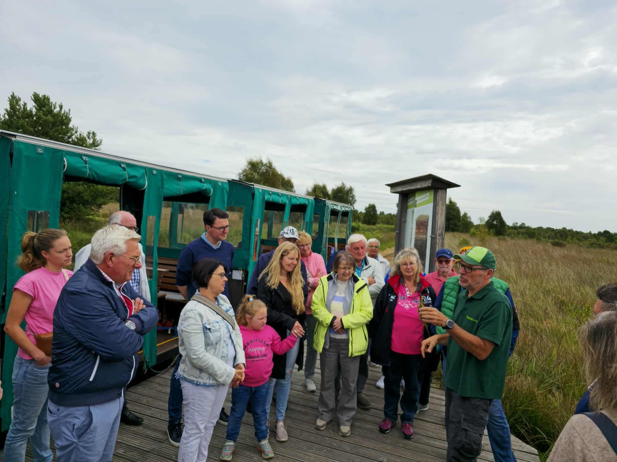 Was für eine tolle Einladung,Christoph Frauenpreiß MdB hatte Wahlhelfer und Wahlunterstützer zu einer „Fahrt ins Blaue“ eingeladen,es ging mit dem Cuxliner über Land zur „Moorbahn“ins Ahlenmoor in Wanna Ahlen/Falkenberg,uns wurde eine tolle Moorlandschaft geboten und eine tolle Führung,die Moorbahn ist eine faszinierende Attraktion nicht nur für Einheimische sondern auch für Touristen ,die sich für den Naturschutz interessieren.